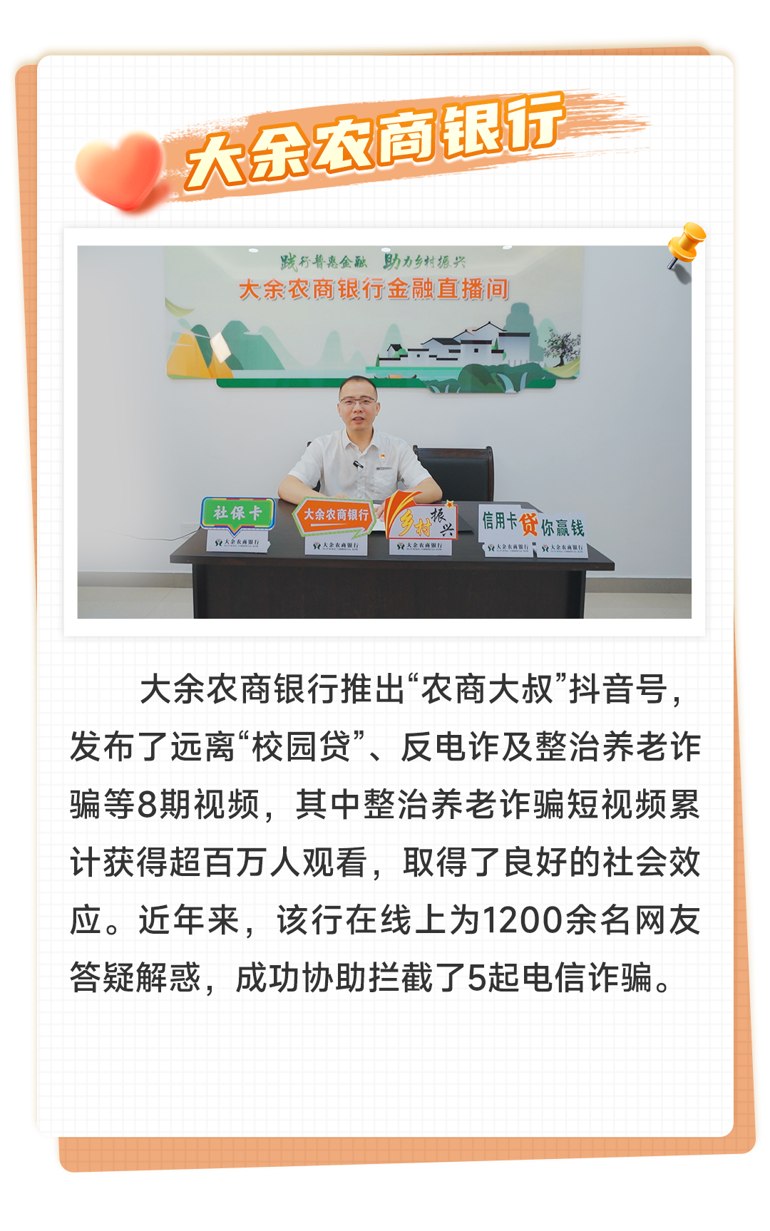 文章内容来源于公众号:江西辖内农商银行,点此可查看原文,内容版权归相关企业所有,本网站仅供交流学习。若涉及版权问题或存在侵权情况,请及时与我们联系,我们将第一时间进行删除处理。
