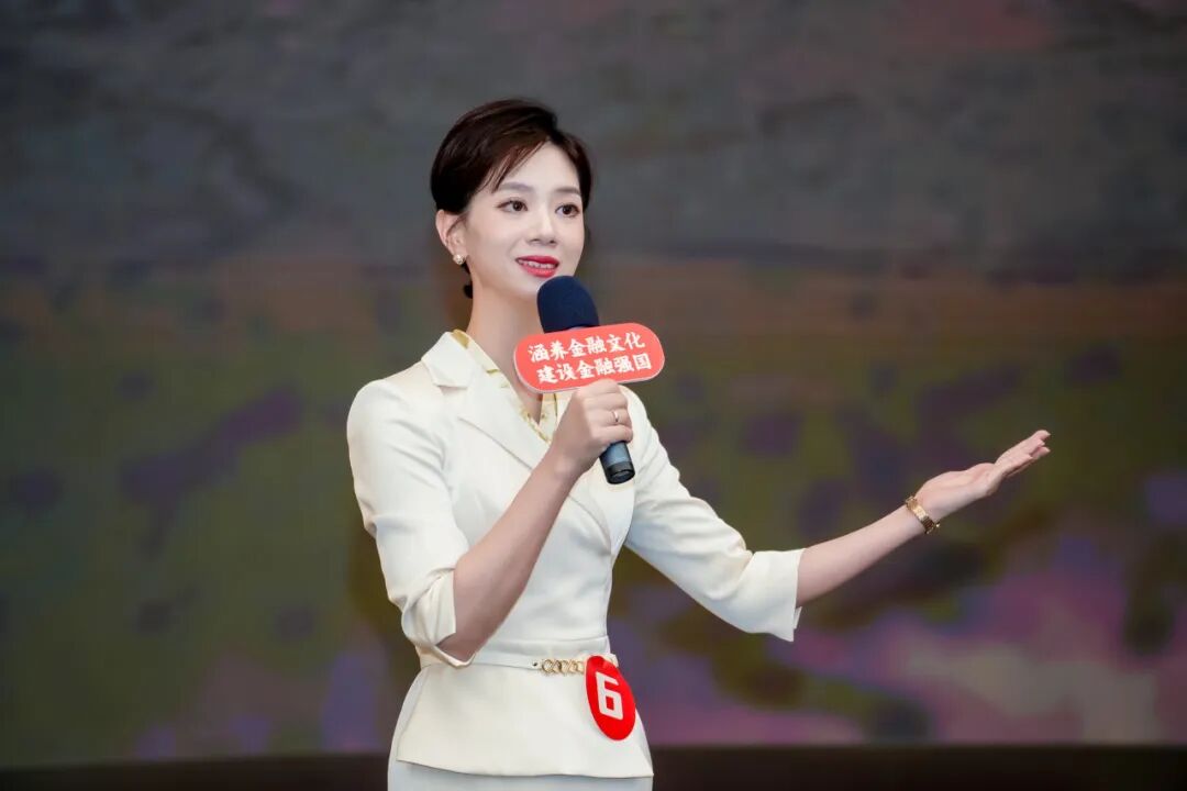陈洁以《传承金融文化 唱响强国之歌》为题,紧扣“传承”这一主线,从历史的回响、责任的接力、文化的赓续等三个方面娓娓道来,全面回望了革命战争年代的红色金融历史,深情讲述了“三同”“三水”“三勤”“三铁”的信合精神,生动展现了江西辖内农商银行践行中国特色金融文化、投身金融强国建设的农商实践。她用真情实感、真挚话语感染了现场观众,激励着新时代的金融人。