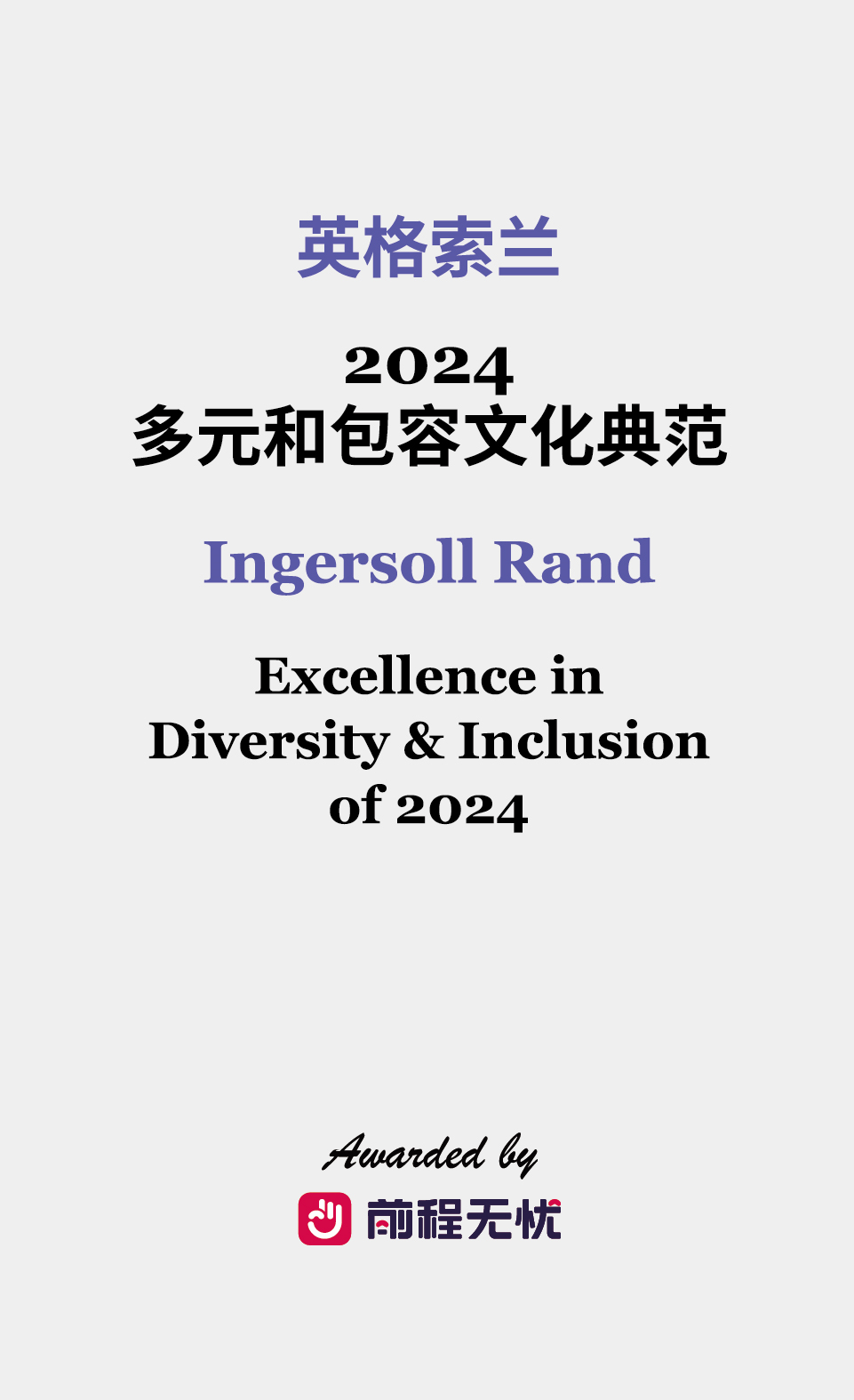 年末,赋予我们又一次美好际遇。近日,前程无忧2024中国典范雇主 (Employer Excellence of China) 榜单揭晓,英格索兰中国荣登榜单。本次获奖是对英格索兰在人力资源领域投入与实践的肯定,也是对公司创新人才战略的又一次高度认可。