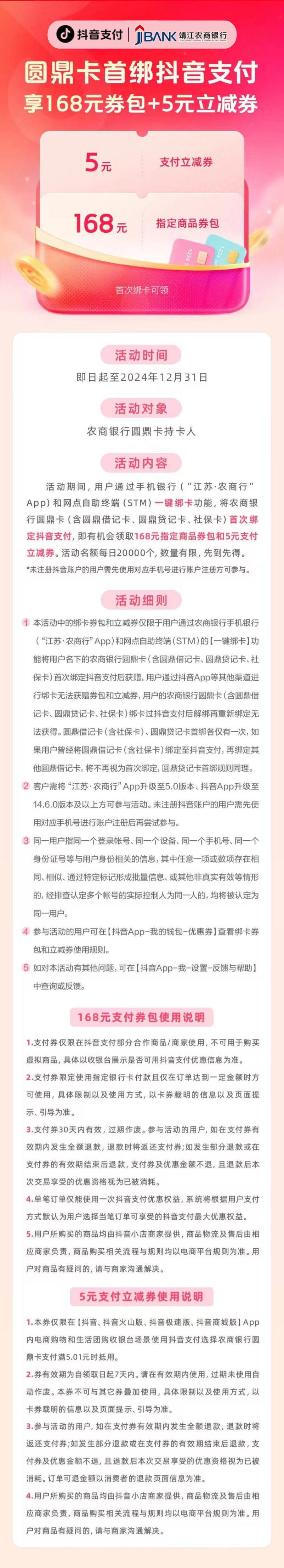 首次绑定抖音支付,有机会领取
