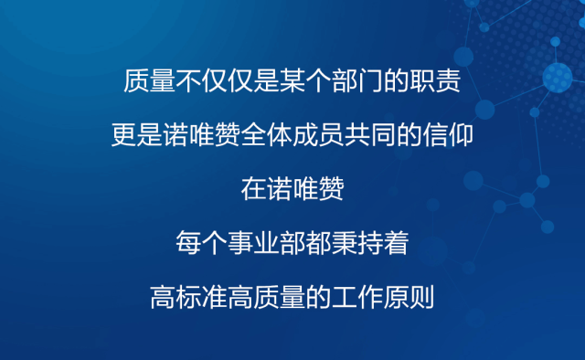 摘要:质量不是一个部门的责任,更是诺唯赞人共同的信仰。