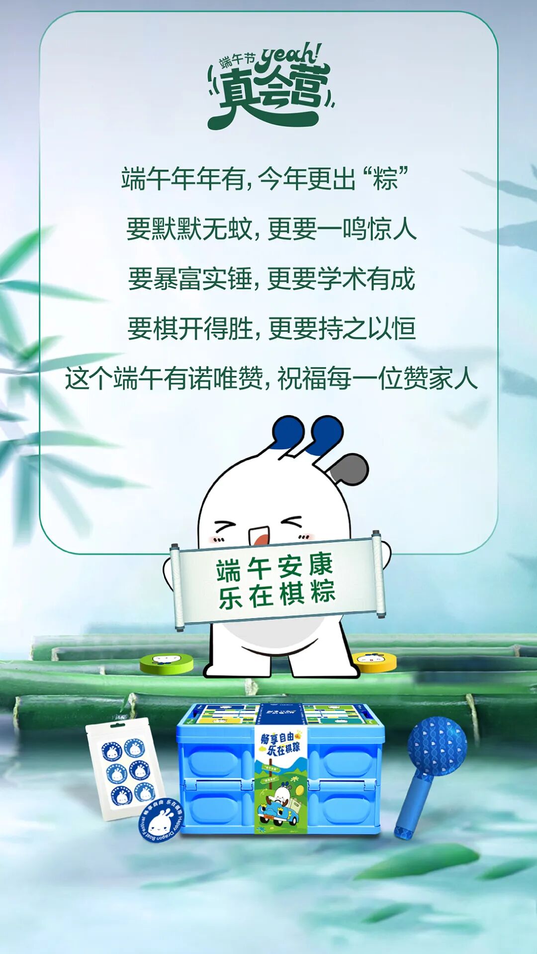 活动礼品:诺吉吉联名端午礼盒【粽子*8、鸭蛋*6、艾草锤*1、驱蚊贴*1包、五子棋*1套、飞行棋*1套、折叠露营箱*1】