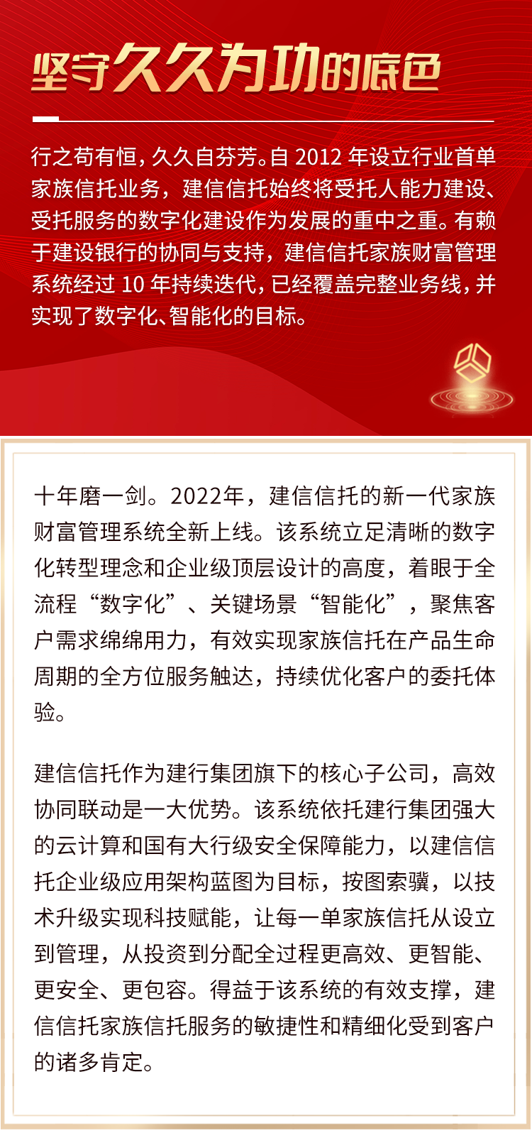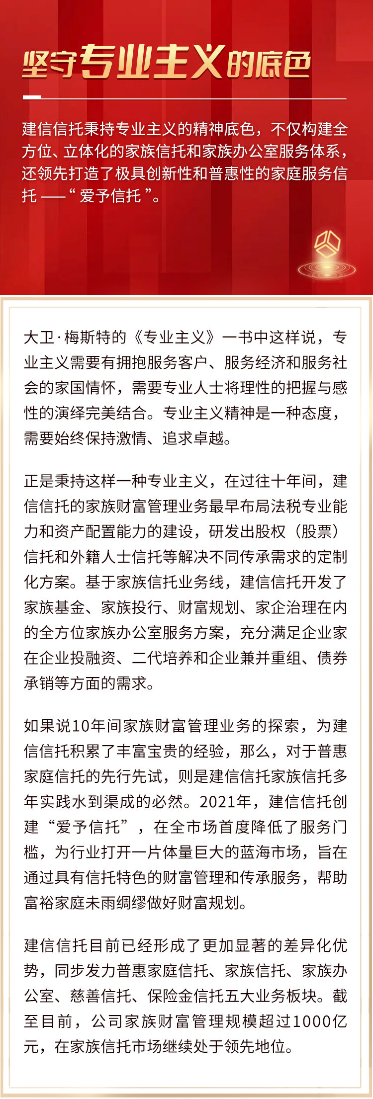 这一切,源于建信信托家族财富管理事业多年积累的“建信”特色和坚守的精神底色。