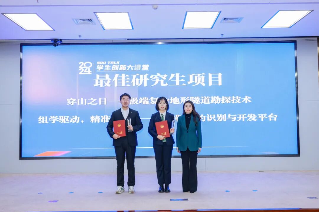 项目提出国内半航空勘探新模式,从仪器研制,核心数据处理软件及算法理论实现自研。探测不受地形条件限制、对低阻体敏感、探测深度较大、灵敏度高、灵活高效、安全经济,能够在复杂地形区域快速开展勘探工作,大幅减少勘探技术成本。目前项目已授权15项专利,技术实际应用于103条隧道,团队躬身践行将论文写在祖国大地上!
