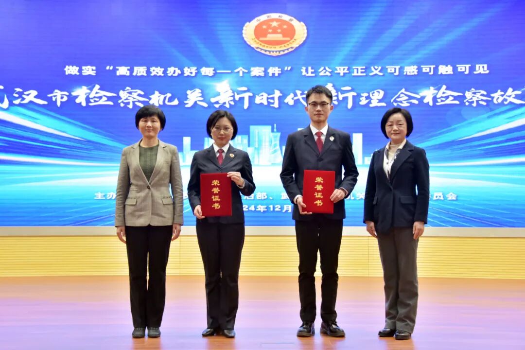 武汉市人民检察院副检察长黄静,武汉市人民检察院党组成员、政治部主任孙凤华为获得二等奖的选手颁奖。