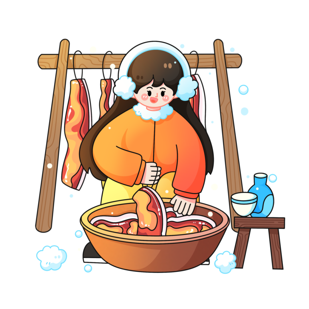 民间有:“冬腊风腌,蓄以御冬”的习俗。小雪时节,气温急剧下降,天气变得干燥,是加工腊肉的好时候。一些农家开始动手做香肠、腊肉,把多余的肉类用传统方法储备起来,等到春节时正好享受美食。很多地方都有冬季吃腊肉的习俗,尤其是南方城市,更是对腊味情有独钟。