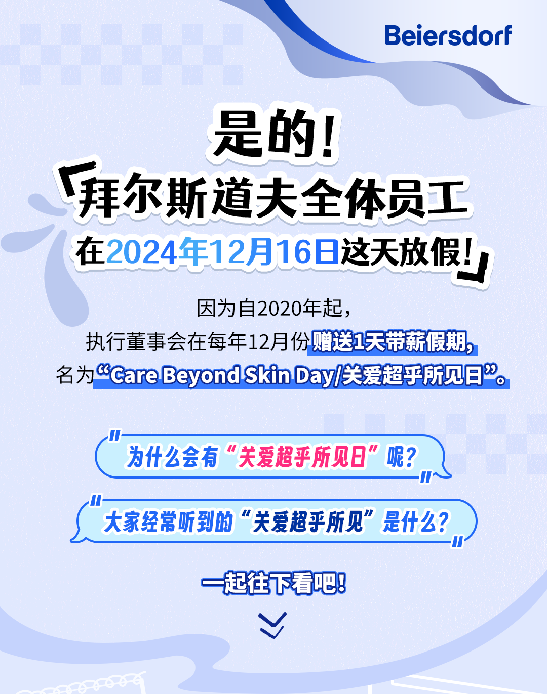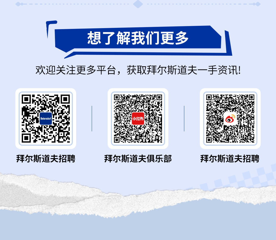 文章内容来源于公众号:拜尔斯道夫招聘,点此可查看原文,内容版权归相关企业所有,本网站仅供交流学习。若涉及版权问题或存在侵权情况,请及时与我们联系,我们将第一时间进行删除处理。