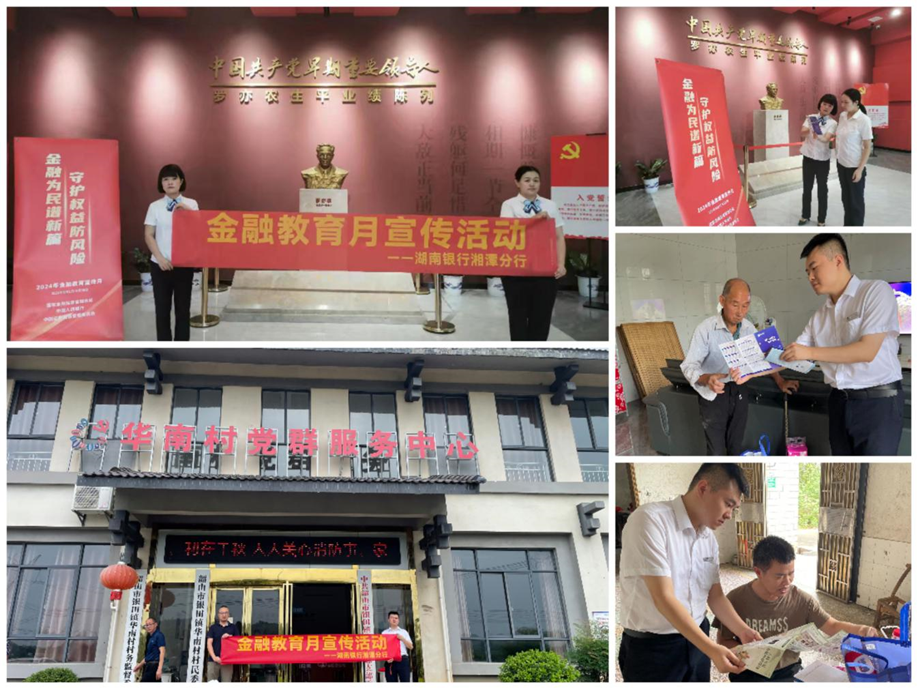 湖南银行分支机构结合本地文化特色,深入革命老区、边远地区等积极开展宣教活动,湘潭凤凰支行前往湘潭县易俗河镇红色文化传承地“罗亦农革命纪念馆”,韶山市支行走进华南村,向县域及农村居民讲解防范电信网络诈骗、非法金融活动、人民币防伪等相关知识。