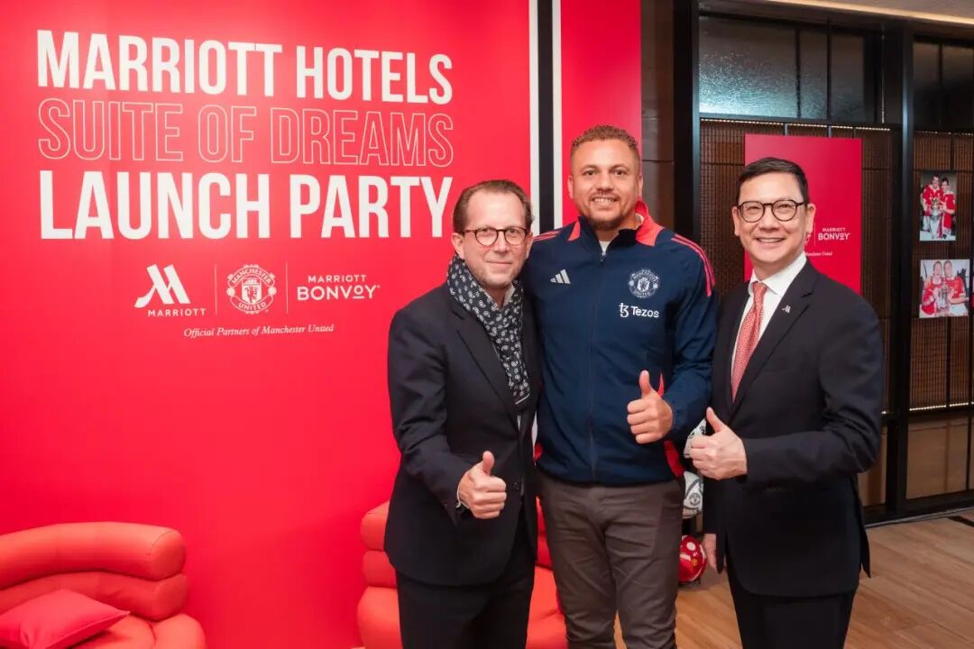 “梦想客房”揭幕活动当日,曼联传奇球星韦斯·布朗(Wes Brown)亲临活动现场,与宾客近距离互动并分享了曼联的体育精神和独特的足球文化。广大会员和球迷朋友也走入梦想客房,共同享受曼联冠军年代荣耀时刻。期间,万豪国际集团大中华区环球销售及销售营运副总裁Richard Boyer、曼联传奇球星韦斯·布朗(Wes Brown)以及香港海洋公园万豪酒店总经理高冠恩(Byron Ko)共同启动大中华区首间万豪酒店梦想客房。