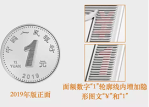2019年版第五套1元硬币正面图案中的( )有一组隐形图文“1”和“¥”。