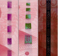 “土豪金”100元的主要防伪特征包括眼观特征、触摸特征和工具及仪器辨别的特征等,以下( )是触摸防伪特征。