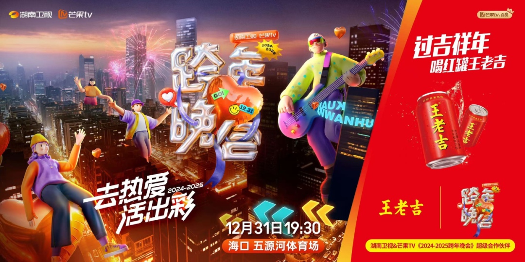12月31日19:30锁定湖南卫视、芒果TV双平台,和王老吉一起看跨晚,迎新年!