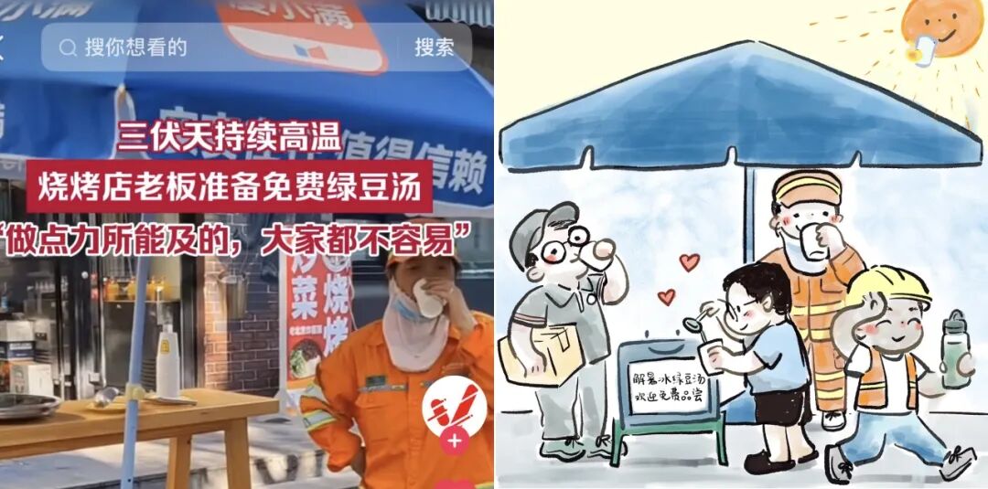 为路人撑伞,还提供免费绿豆汤