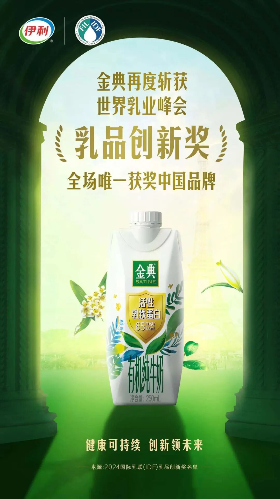 今年10月,金典再次登上全球乳业最高领奖台,斩获世界乳业峰会“世界乳品创新奖”,成为全场唯一获此殊荣的中国品牌。历经16年的科研积累,金典首创常温活性乳铁蛋白定向保护技术,打造出全球首款活性乳铁蛋白有机纯牛奶,进一步为全球消费者的免疫健康保驾护航。