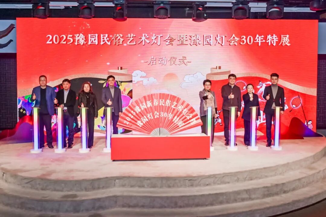 上海市文旅局副局长、一级巡视员程梅红;黄浦区委常委、副区长徐知;上海市文旅局非遗处处长陈平;上海市文旅局重大活动办公室主任、市文化旅游事业发展中心主任李平;黄浦区委宣传部副部长,区文旅局党组书记、局长、二级巡视员许艳卿;黄浦区委宣传部副部长,区文明办主任胡琰;金山区博物馆馆长余思彦等领导共同出席活动,与豫园股份执行总裁、豫园商置事业群CEO陈毅杭和豫园股份副总裁、东方生活美学研究院院长胡俊杰,共同启动2025豫园民俗艺术灯会暨豫园灯会30年特展。