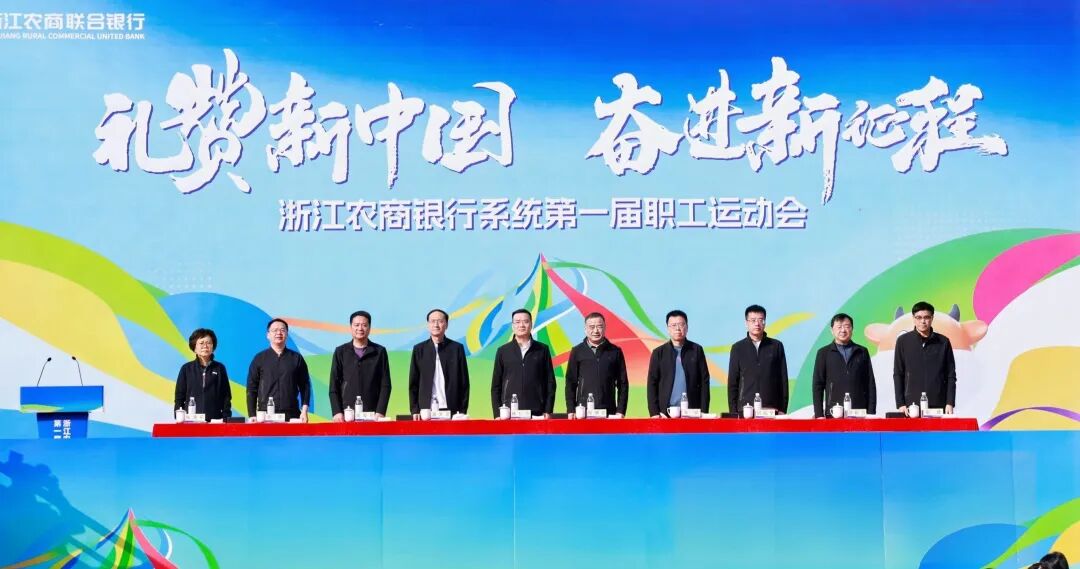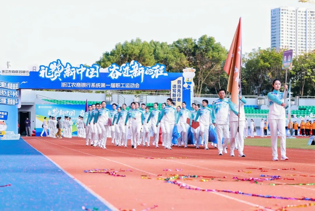 欣逢盛世,运动燃情。为庆祝新中国成立75周年,浙江农商联合银行成立20周年,11月22日至23日,浙江农商银行系统第一届职工运动会在杭州举办。浙江农商联合银行党委书记林仁方出席开幕式并宣布开幕,党委副书记、行长陈博恺出席闭幕式并宣布闭幕,党委副书记潘天灵致开幕词,行领导班子成员出席,全系统近千余名运动员参加。