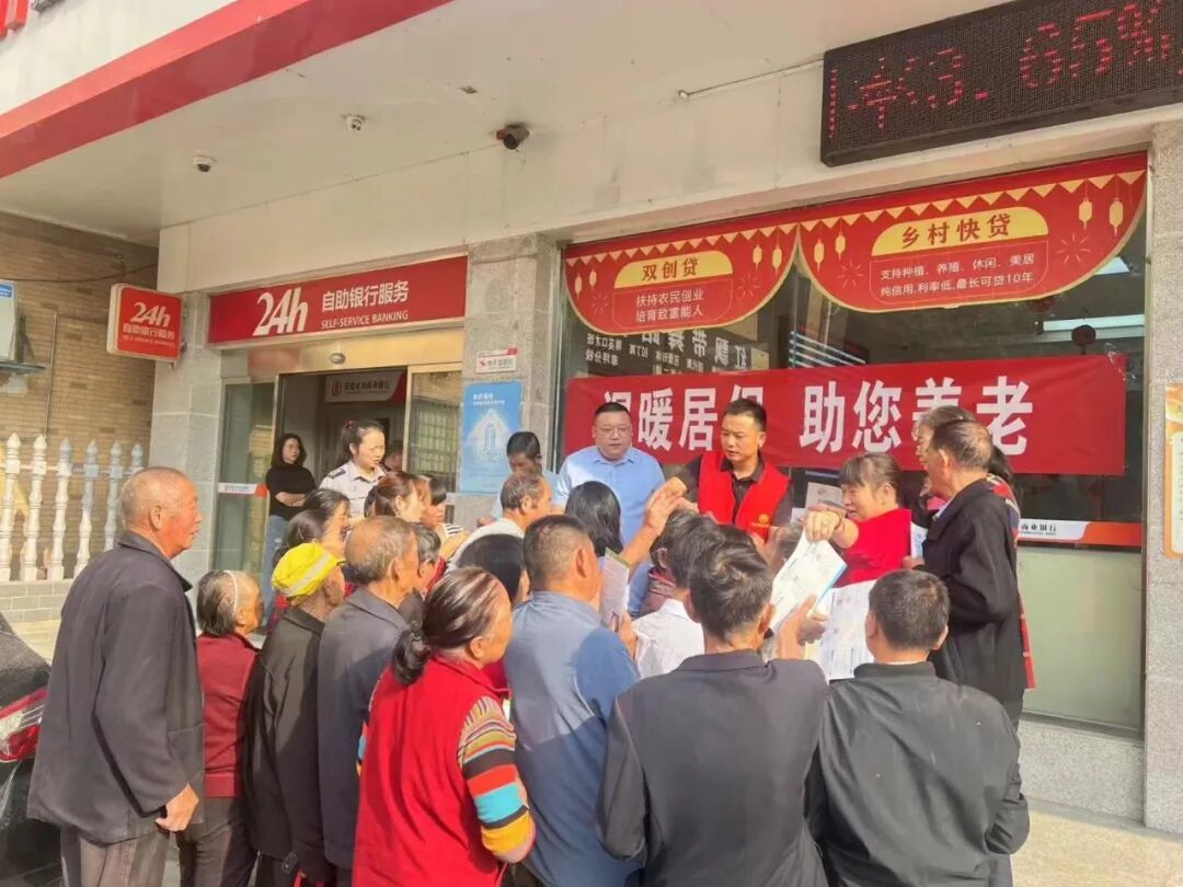 了解到这一情况后,草坪支行的工作人员主动提出上门服务。当天,他们带上设备和所需材料来到刘奶奶家中,严格按照制度规定,双人核实客户真实情况,并耐心指导刘奶奶签好相关资料。由于草坪支行没有即时制卡机,收集完资料后,他们又马不停蹄地赶往有社保卡制卡机的网点,帮助刘奶奶进行制卡和激活。当老人拿到崭新的社保卡时,不住地称赞草坪支行服务细致周到,让她在困境中感受到了温暖与关爱。10月11日上午,草坪支行联合草坪镇劳保站,精心开展“温暖居保 助您养老”主题宣传活动。活动现场热闹非凡,银行门口摆设的展台与鲜艳的横幅吸引了众多民众驻足。工作人员热情地向民众发放城乡居民养老保险宣传手册,耐心细致地讲解养老保险的参保对象、缴费档次、政府补贴优惠以及待遇领取等情况,为居民们算好“明白账”“长远账”,让大家充分理解缴费政策的益处。