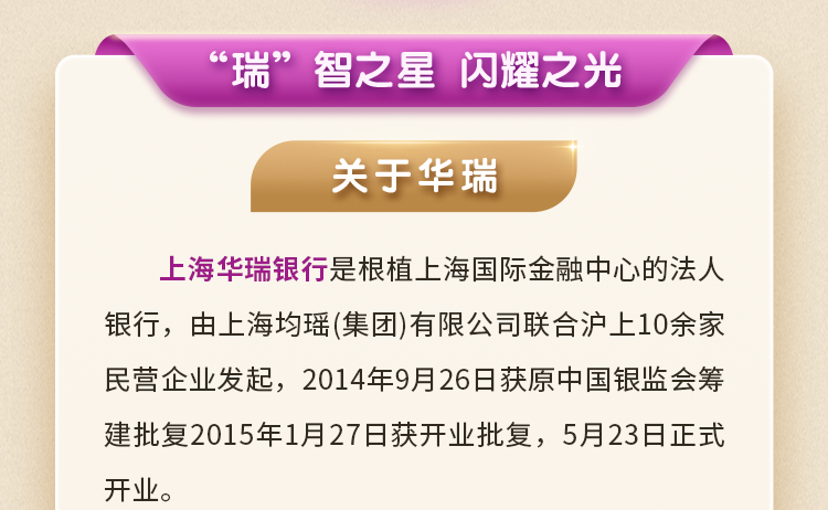 文章内容来源于公众号:上海华瑞银行,点此可查看原文,内容版权归相关企业所有,本网站仅供交流学习。若涉及版权问题或存在侵权情况,请及时与我们联系,我们将第一时间进行删除处理。