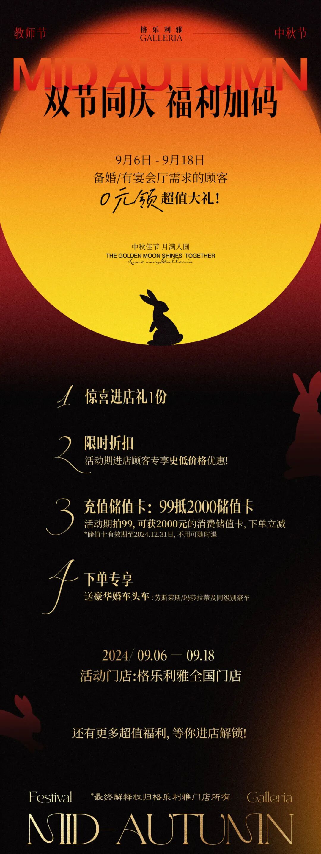 摘要:双节同庆!福利加码!9.6日-9.18日活动期进店得四大重磅福利!限时!