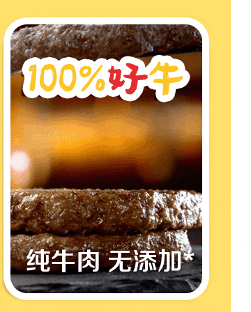 *纯牛肉无添加:麦当劳的100%纯牛肉饼,经由物理压制成型,不含其他添加成分。