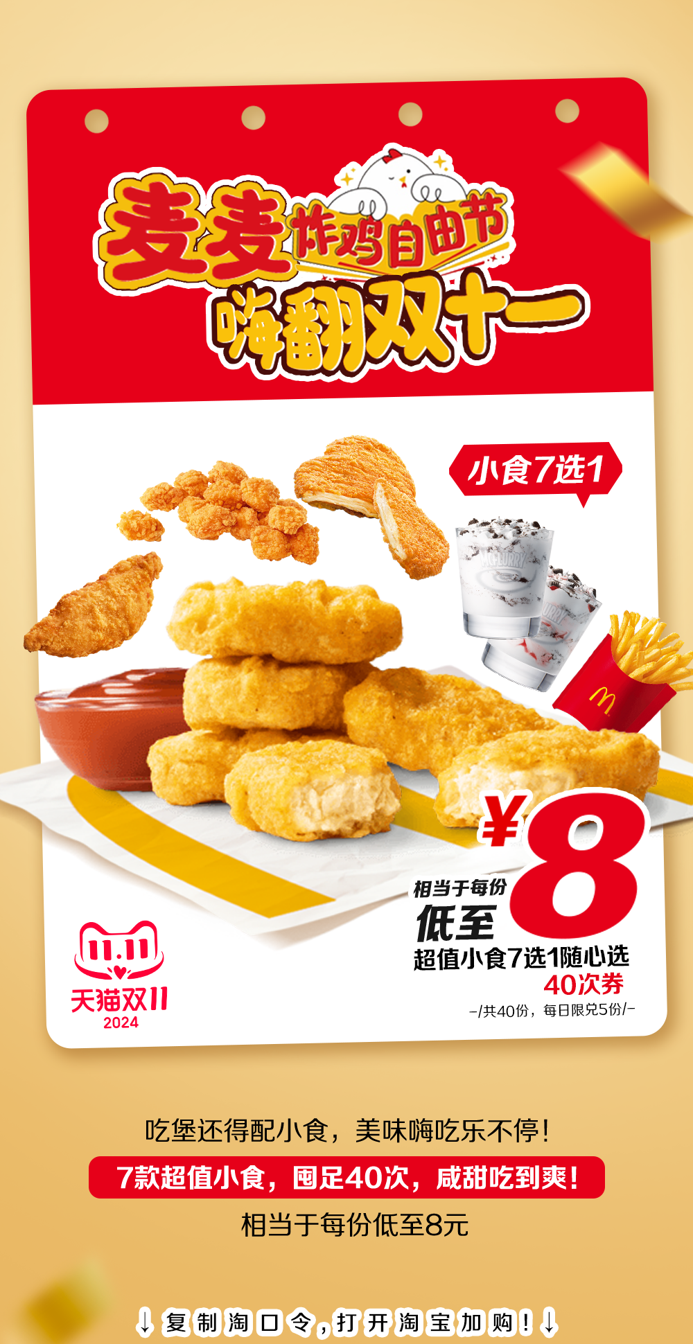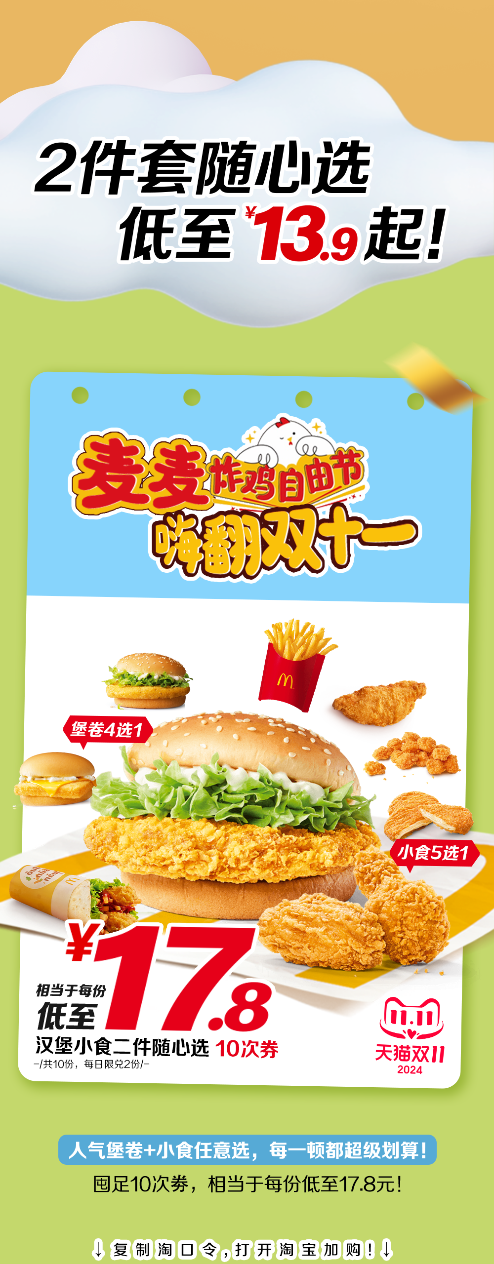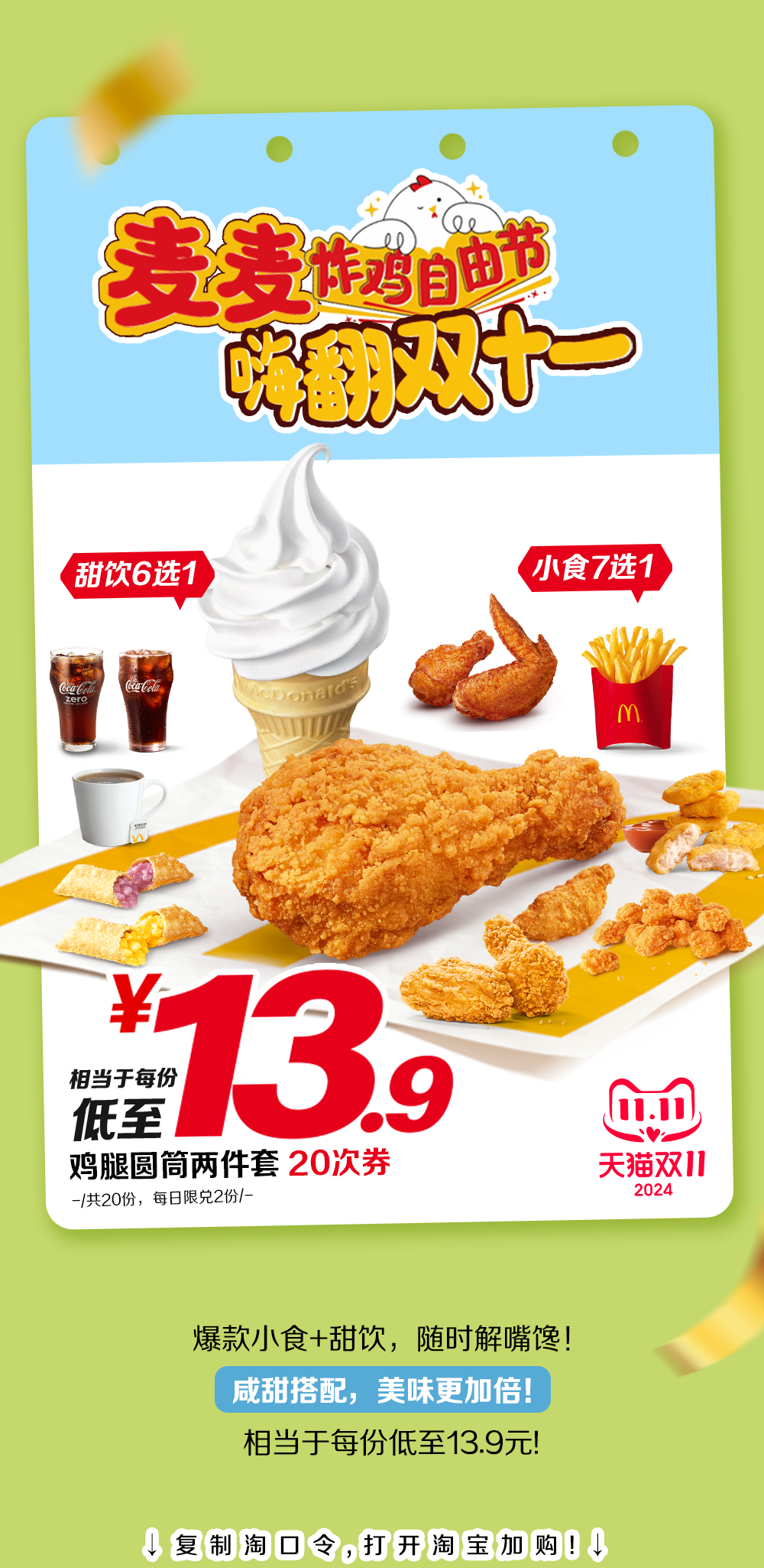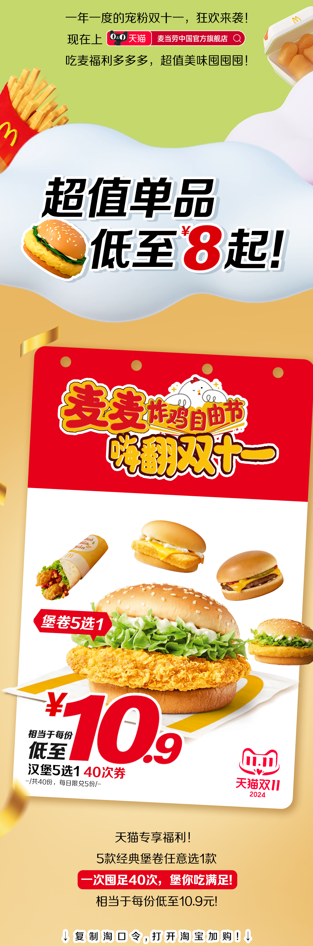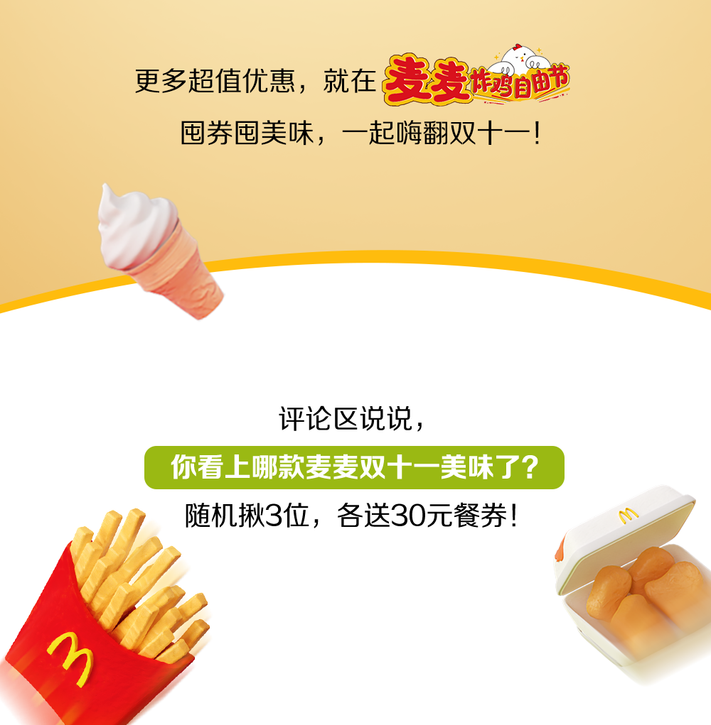 麦当劳|双11开囤 ▶ 8元吃鸡!10.9元吃堡!