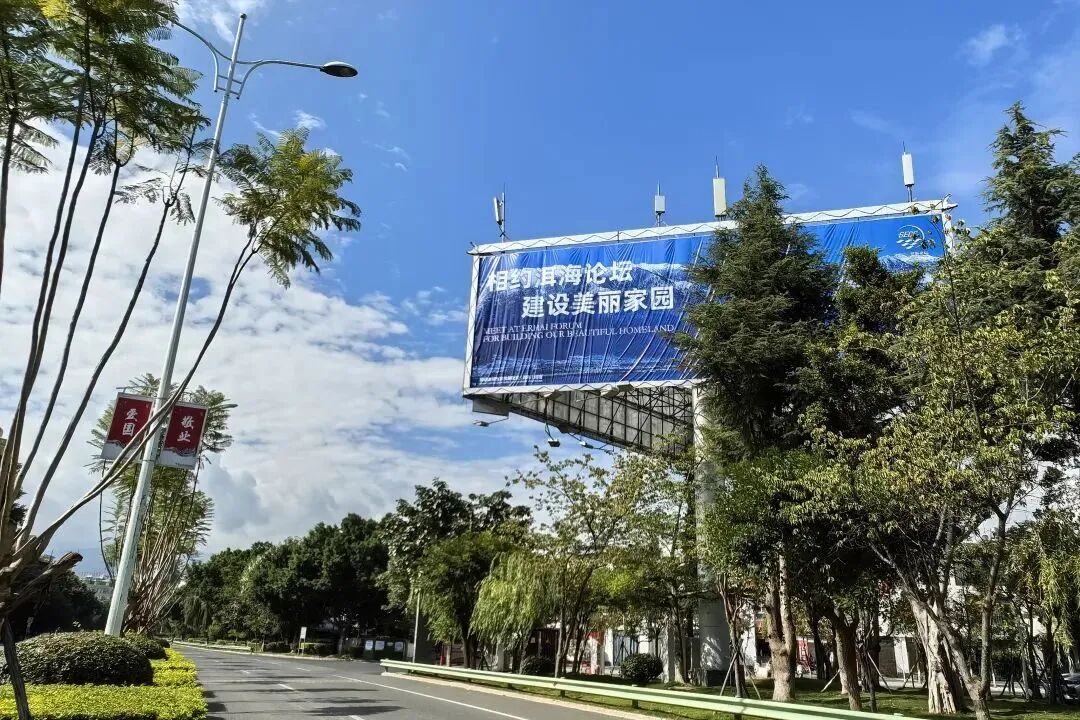 在机场、慢谷路口、兴盛桥南北面等地,单立柱上已安装好了2024洱海论坛公益广告。高耸的宣传标语分外醒目,让人换个角度感受生态自然之城的魅力,突显展示大理原始而纯粹的自然美景,共同感受生命的和谐,链接多元的文化。