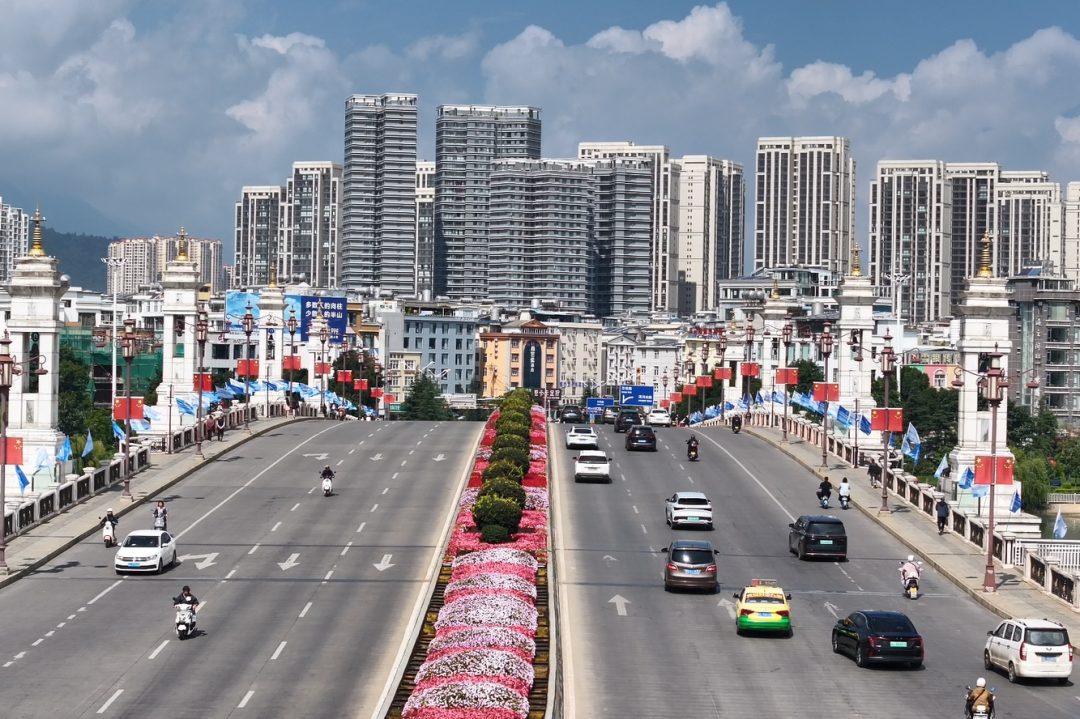 在大理站进出站口天桥、兴盛大桥等地,蓝白相间的道旗迎风扬起,与大理的蓝天白云遥相呼应,共同摇曳出“有风的地方”得天独厚的自然风光,洁净、纯粹、怡人、自然的大理色彩,让大家一同感受有风之城的山川秀丽和浪漫宜居。