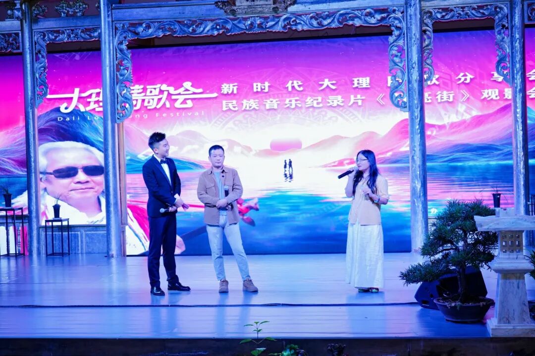 中华人民共和国成立75周年华诞在即,9月26日晚,大理情歌会·“新时代大理民歌”分享音乐会暨大理民族音乐纪录片《月亮街》观影会在大理石空国石博物馆举行。