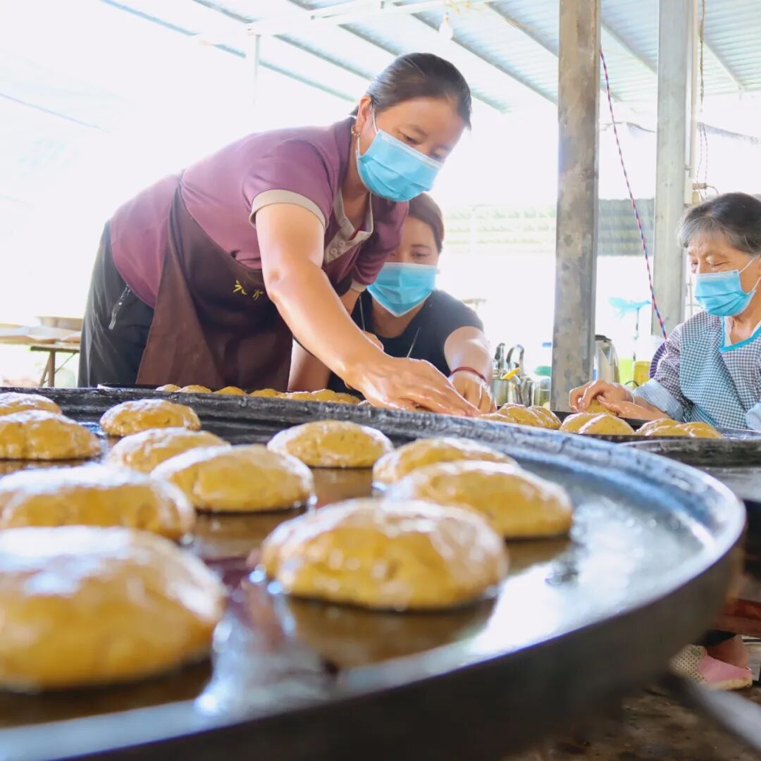 漾濞县漾江镇上邑村委会瓜拉板,属苍山西坡的高寒山区。这里的客家人天生的精明能干,加上瓜拉板多元又独特的饮食文化,催生了当地清香酥甜的传统小月饼,成为山里的老人小孩最爱吃的“粑粑”。