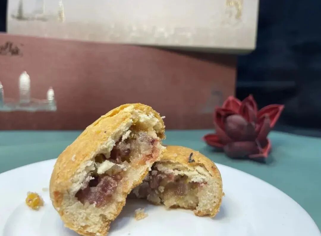 紫苏红糖大月饼的酥脆饼皮与软糯的内馅完美结合,当你咬下第一口,饼皮会先在口中轻轻散开,随之而来的紫苏香气与红糖的甜美缓缓涌上味蕾,层次分明,回味悠长。