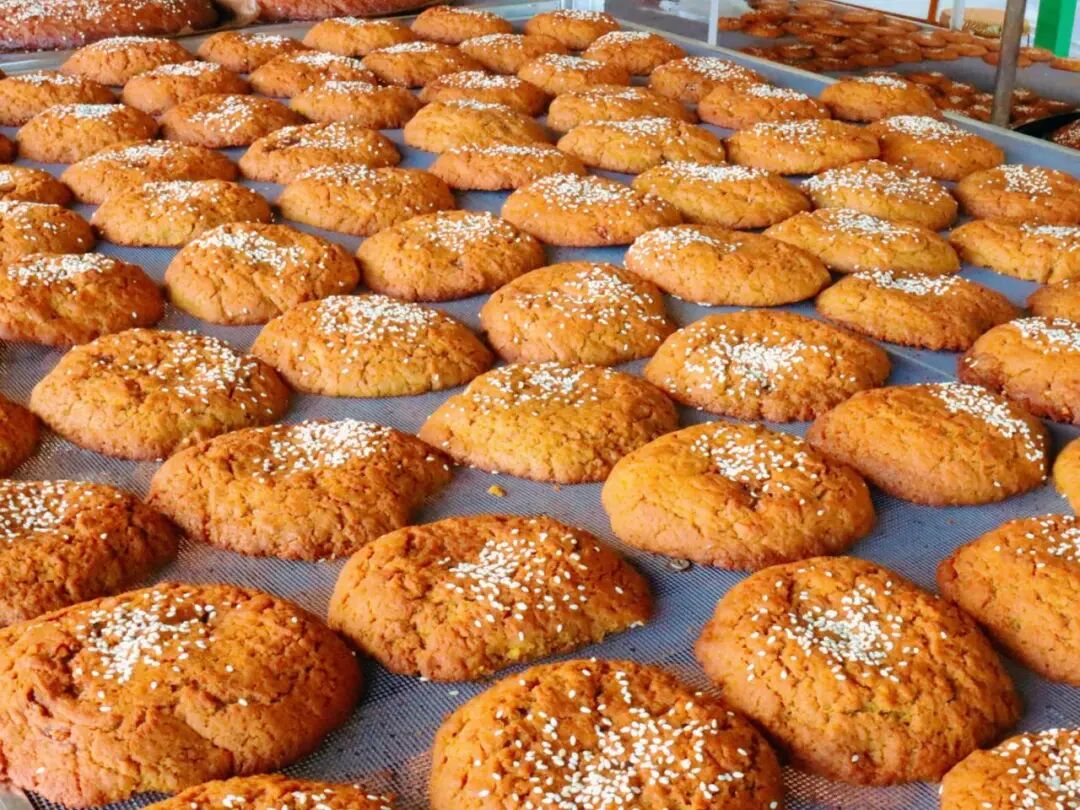 火烤饼口感外脆内软、香甜可口,又便于携带和多日保存,经年累月传承至今。