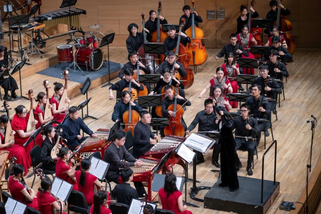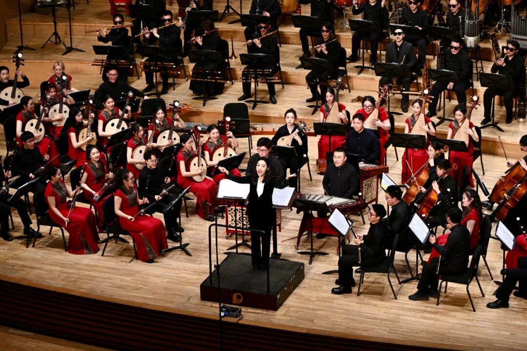 上半场,北洋民族管弦乐团在常任指挥贾爱婷的指挥下,奏响中国锣鼓乐经典名曲《龙腾虎跃》,以音乐表现七个少数民族和谐相处的民族管弦乐组曲《七彩之和》(选段),描绘出一幅青山绿水画卷的《青青思念》等多首名曲,展现国乐之美。上半场最后,《射雕英雄传》主题曲《世间始终你好》燃爆全场,现场观众和乐团激情互动,尽显磅礴之气。