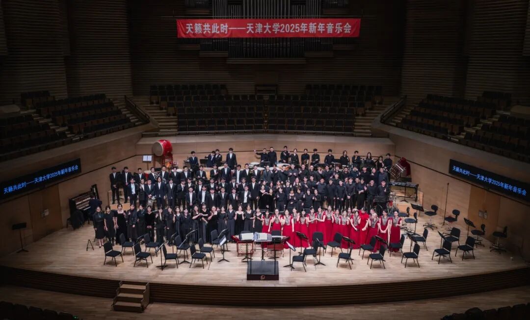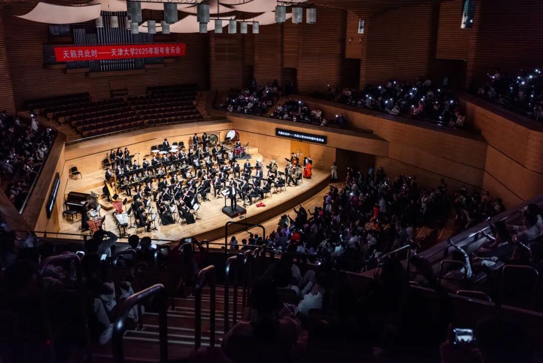 12月20日晚,天籁共此时——天津大学2025年新年音乐会在天津大剧院音乐厅震撼上演。天津大学北洋民族管弦乐团、北洋军乐团150余名非艺术专业团员倾情献艺,激情奏响喜迎新年的华丽乐章。天大师生校友和社会各界人士近千人观看了演出。