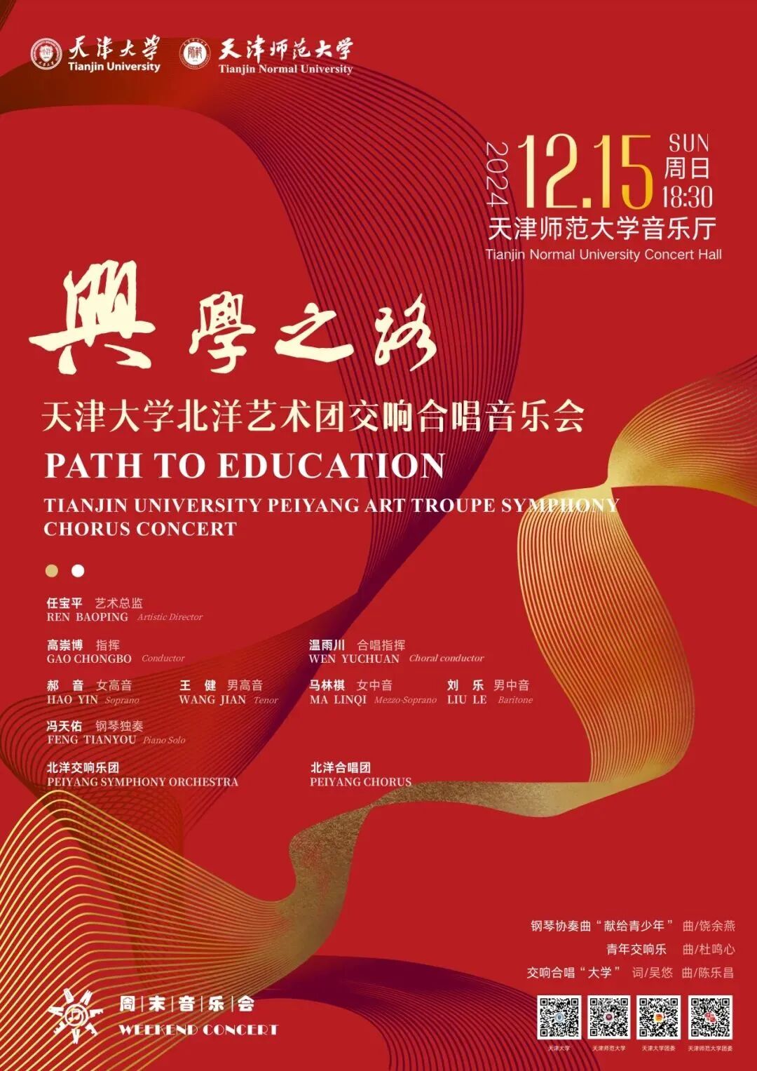 多年来,坚持“培养会拉小提琴的爱因斯坦”的育人理念,天津大学北洋艺术团培养了一大批品学兼优、热爱高雅艺术的优秀学子。2024年12月20日是教育部发布《关于全面实施学校美育浸润行动的通知》一周年整。一周内,天津大学以两场高水平音乐会,充分展示了学校深化美育改革的实践育人成效。