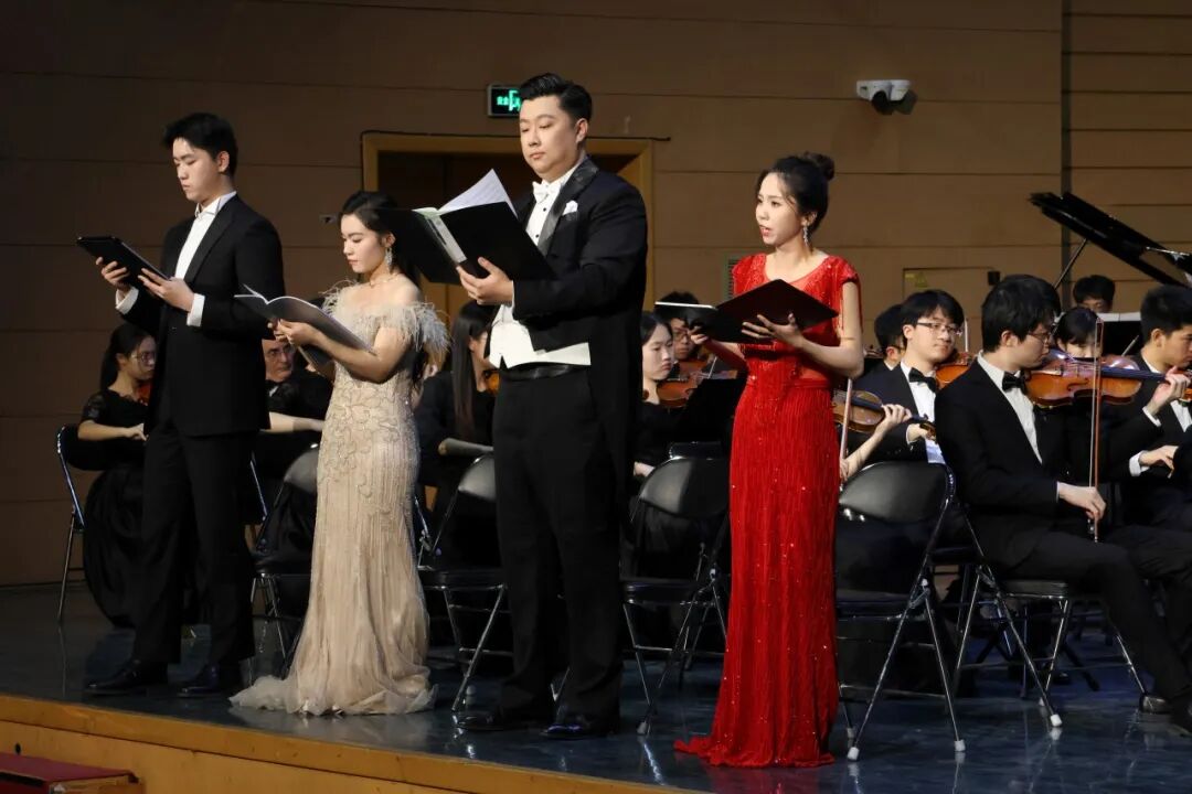 紧接着,北洋交响乐团表演了由著名作曲家杜鸣心先生于1979年创作的《青年交响乐》,青年艺术家们通过音乐表达了青年人对未来的憧憬和对生活的热爱。现场观众从“前奏曲”里感受到了青年人昂扬向上的追求;从“夜曲”里感知到了青年人对知识真理的探求;从“圆舞曲”里体验到了青年人丰富多彩的生活;从“进行曲”里体会到了年轻一代在理想指引下拼搏的激情。