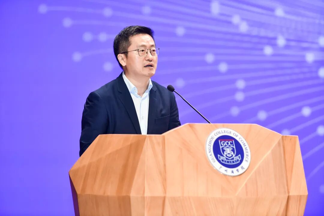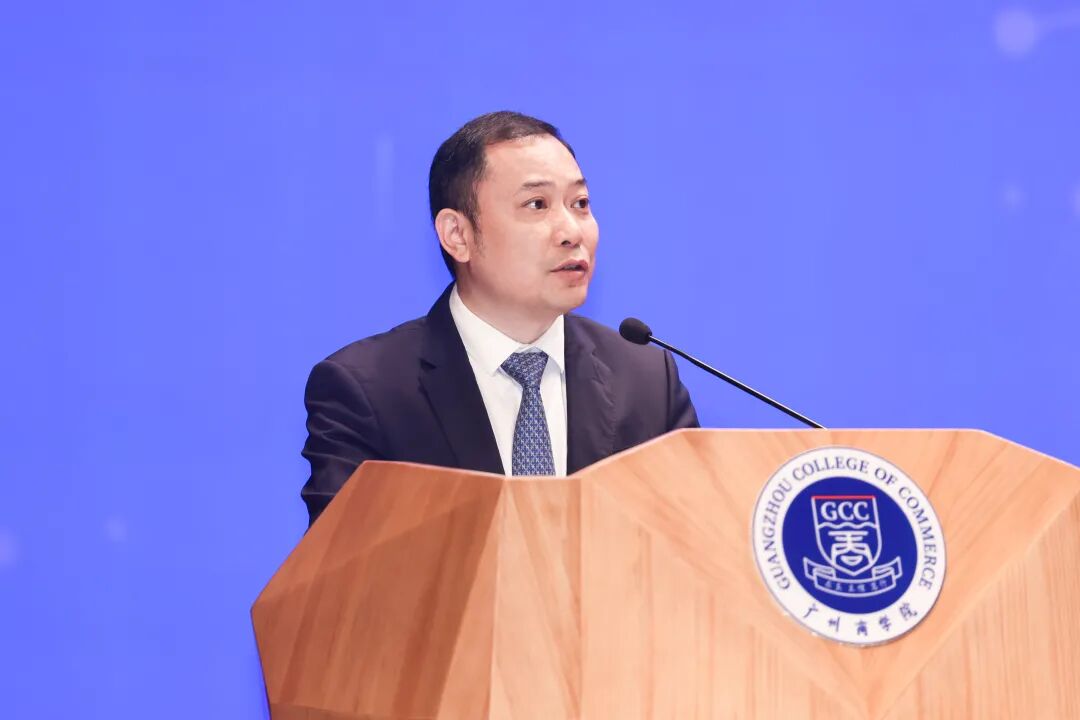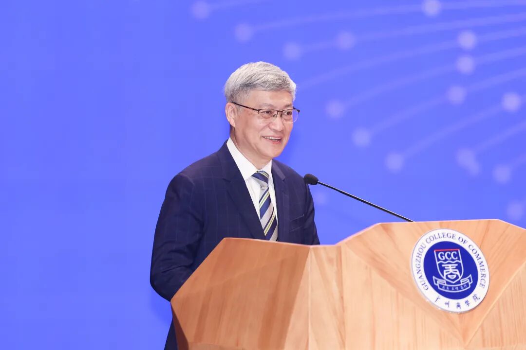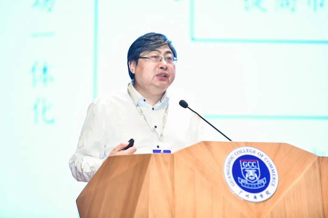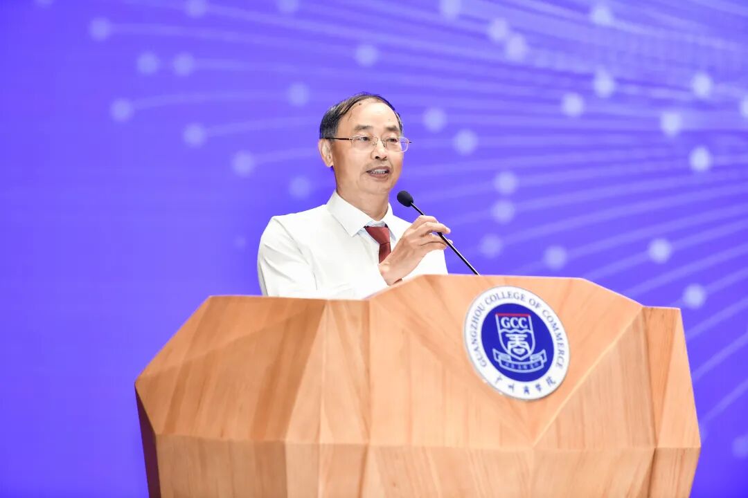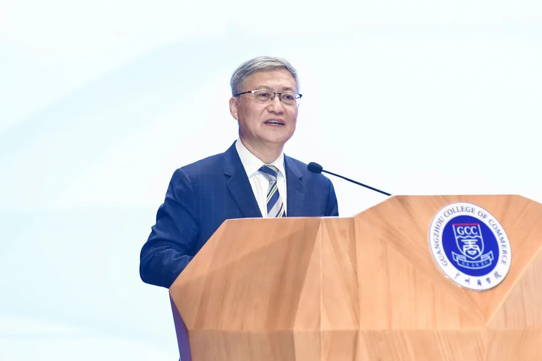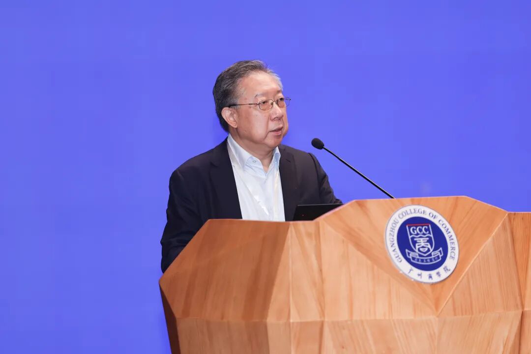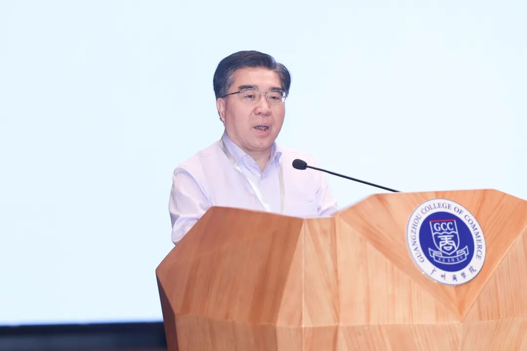 我校执行董事长郭小聪先生代表承办方在致辞中表示,2024年是广州商学院建校25周年,值此重要历史节点,中国世界经济学会2024年年会暨中青年论坛在广州商学院举行,承载着学会对广商的高度信任和关心支持。他指出,广商经历了不同的时期和阶段,在2020年通过了教育部本科教学工作合格评估之后,学校在硬件和软件方面均经历了一个快速发展阶段,并形成了非常清晰的目标和长远规划。作为一所先试先行的民办大学,广商形成了董事会主抓经营,发展咨询委员会主抓学科、教学体系、科研和师资队伍建设的双轮驱动创新管理模式,走出一条可持续发展的新路子。他希望与会领导、专家、学者能够一如既往地给予更多关怀与支持,助力广商在未来的高质量发展中取得更大的成绩,共同见证更有活力、稳步实现自身发展规划的广州商学院。