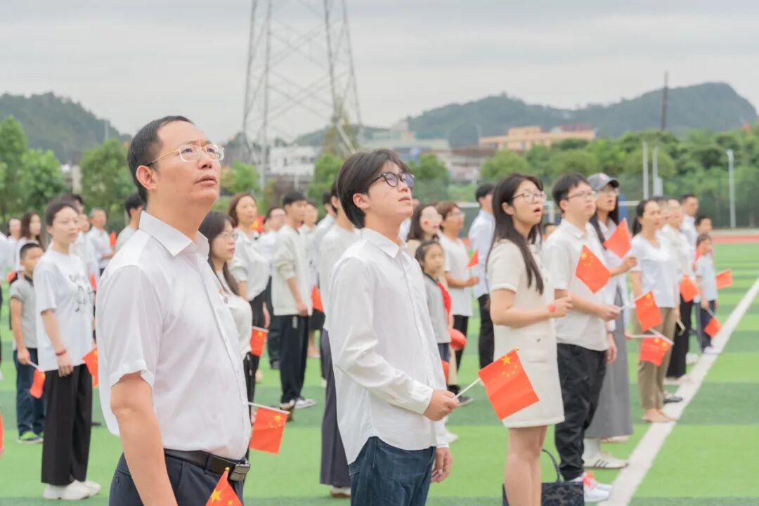 仪式在全体师生齐声歌唱《我和我的祖国》中圆满落幕。微风绰绰,红旗飘飘,歌声回荡在校园上空。祝愿我们的祖国繁荣昌盛,人民幸福安康,学校发展蒸蒸日上。