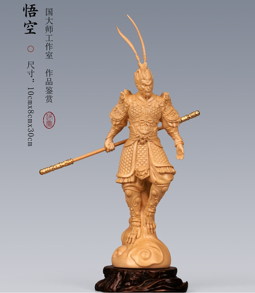 A representative inheritor of the Chinese intangible cultural heritage of boxwood carving, Ye Xiaopeng's original boxwood carving of Sun Wukong, or Wukong, also known as the Monkey King become highly sought after.