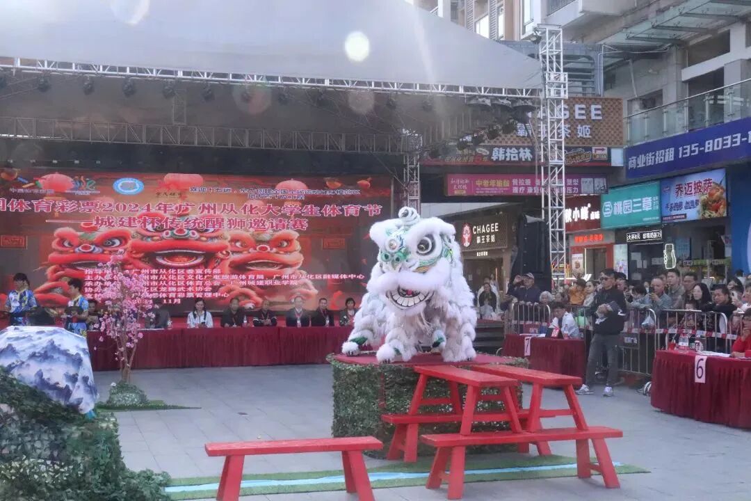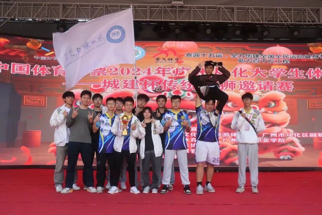 11月23日,2024年广州从化大学生体育节——城建杯传统醒狮邀请赛于从化区欣荣广场举行。比赛共有6支队伍参加了比赛,他们以饱满的热情和精湛的技艺,为观众呈现了一场精彩纷呈的醒狮盛宴。我校艺术团醒狮队凭借精湛的技艺、威武的阵势和出色的表现,荣获传统南狮单狮二等奖的佳绩。