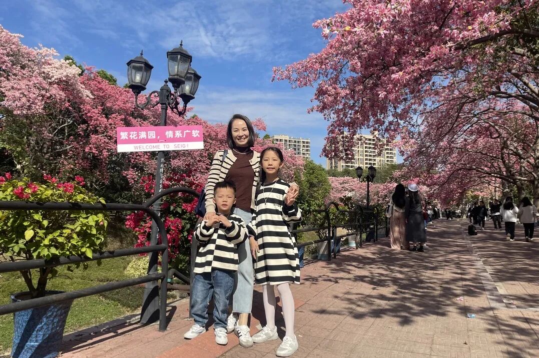 2016届工商管理(市场营销)的何思瑶和曾杰荣是大学同班同学,毕业后相爱并步入婚姻。在每年丝木棉花团锦簇、竞相开放的时节,二人相约广软,一同参与“丝木棉节”活动返校拜访,他们表示,“虽然外面很多地方都有种丝木棉,但还是觉得学校里面的最好看,每次回来都是天气最好的时候,随便怎么拍都好看。”