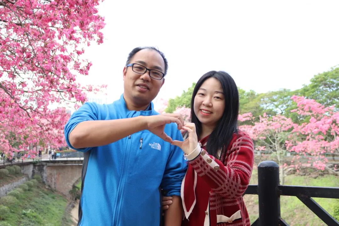 “重回校园感觉自己老了,就觉得物是人非,但青春还是留在这里的。”蔡滨灿和郭晓菁分别在2008年和2009年毕业于原管理系(现为数字经济与管理学院),他们在大学期间相识、相爱,从校园走向婚姻的殿堂。他们分享道,大学是一个全新的开始,是学生步入社会的过渡阶段,在校期间的社会实践活动,对大学生受益良多。作为学长学姐,蔡滨灿和郭晓菁想对广软的学弟学妹说,“社会非常精彩,比起学校的生活要更加精彩,勇敢地去闯出属于自己的一片天地吧!一切都有可能!”他们祝福学校越来越好,丝木棉能够遍地盛放。