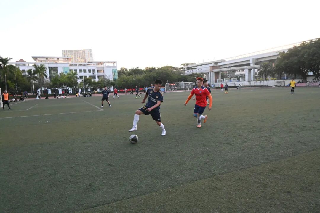 绿茵场上,第二届“校友杯”足球赛激战正酣。来自8个院系16支队伍的校友们身着各队球衣,奔跑追逐,汗水浸湿后背。传球、过人、射门,动作干脆利落,默契尽显。场外亲友团呐喊助威声浪此起彼伏,目光紧锁球场,每一次欢呼都似要冲破云霄,燃爆这青春重聚的赛场。
