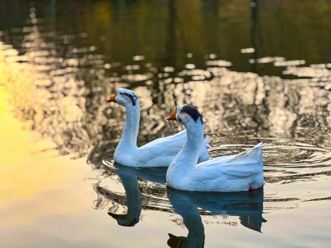 大鹅舞动在光影里,洁白如雪
