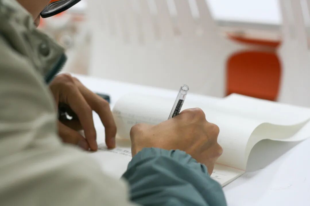 伏案于书桌前