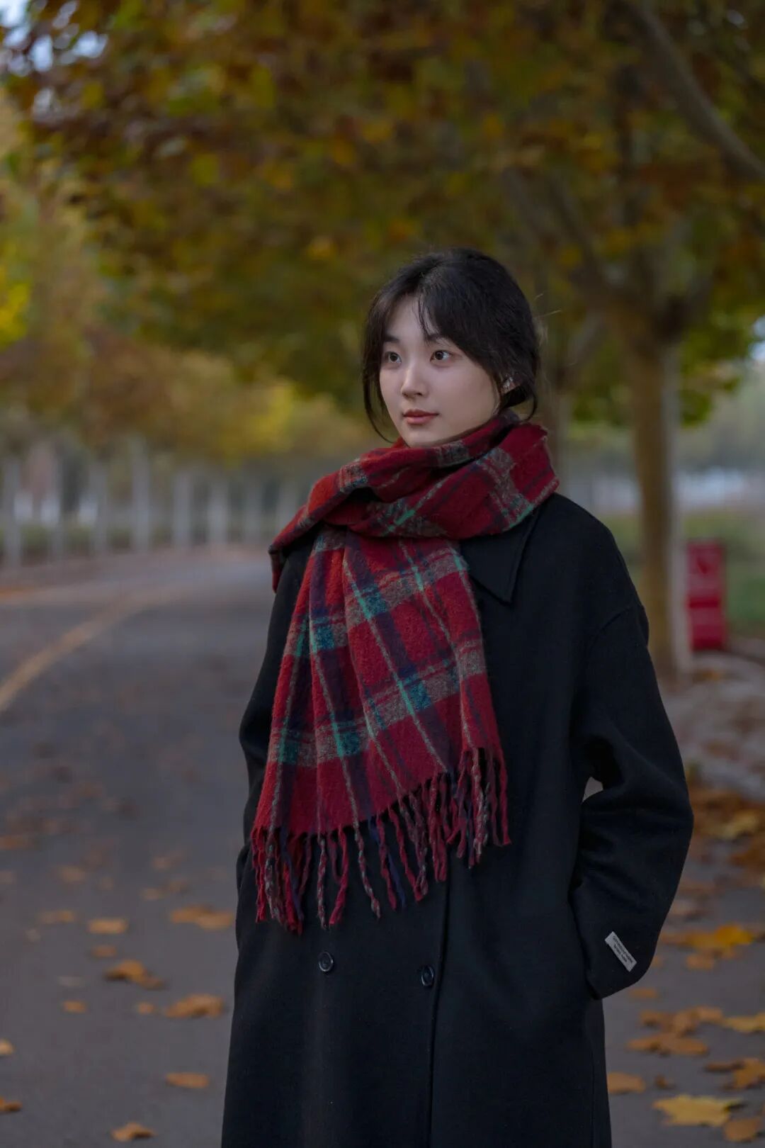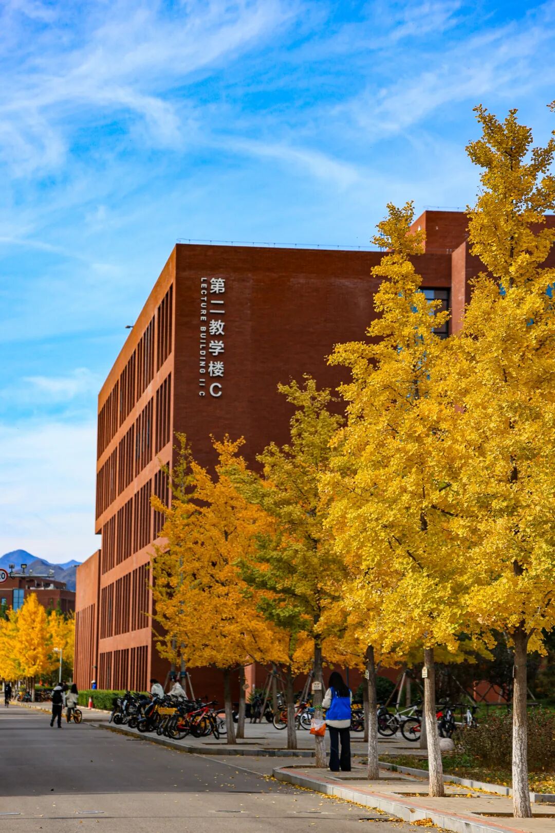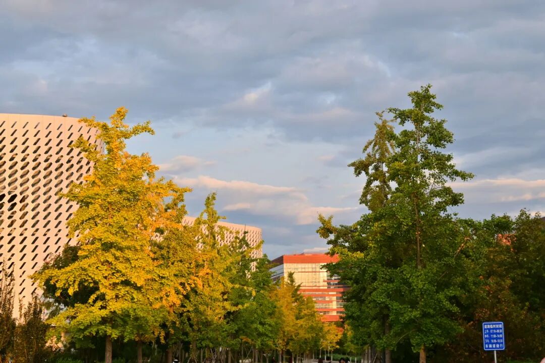 路旁的树木守护着校园