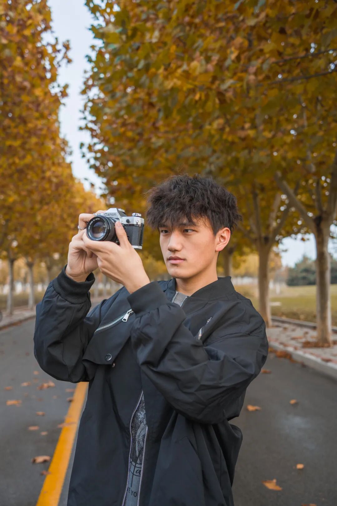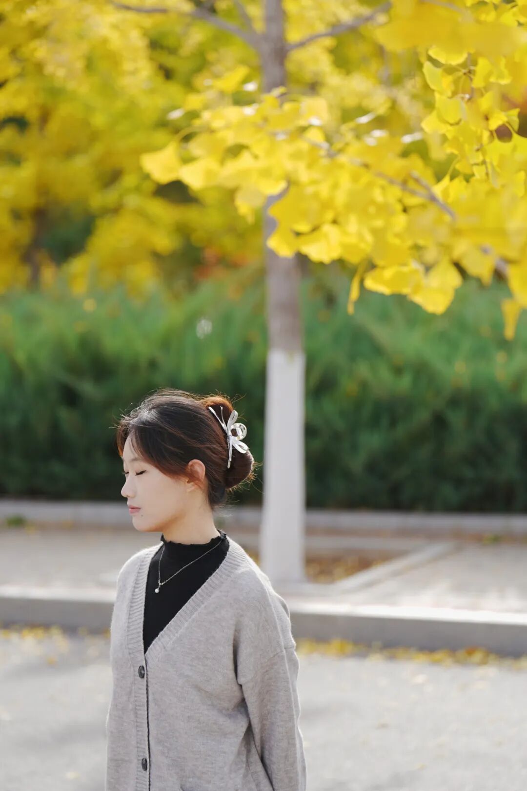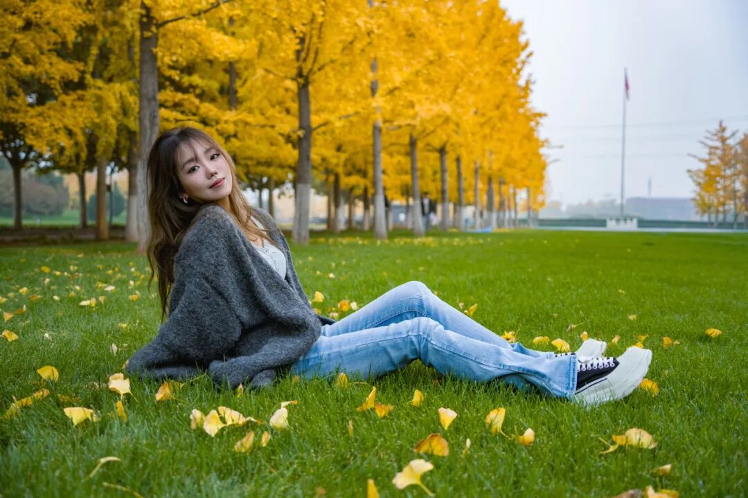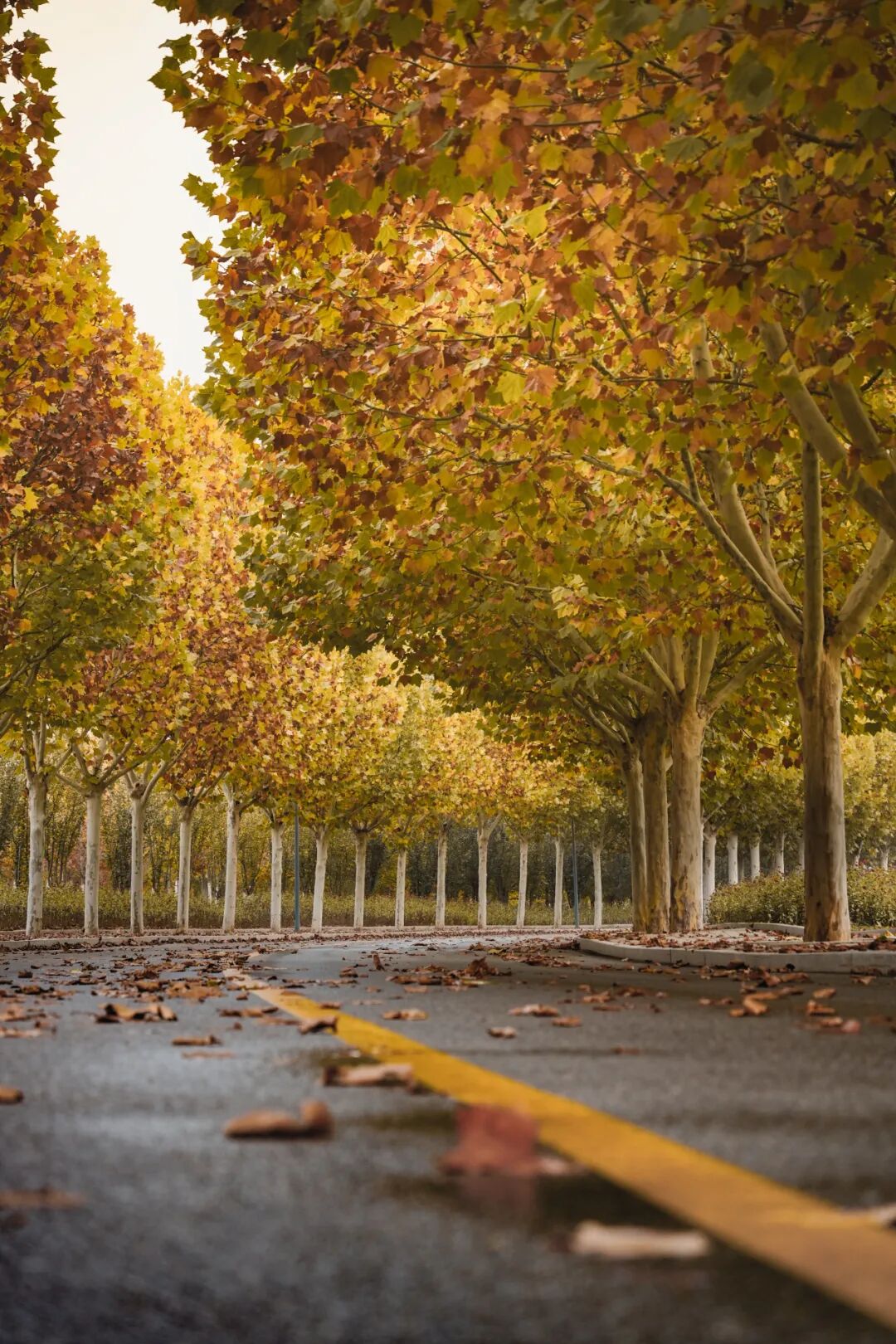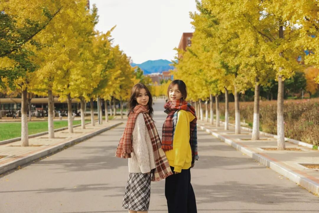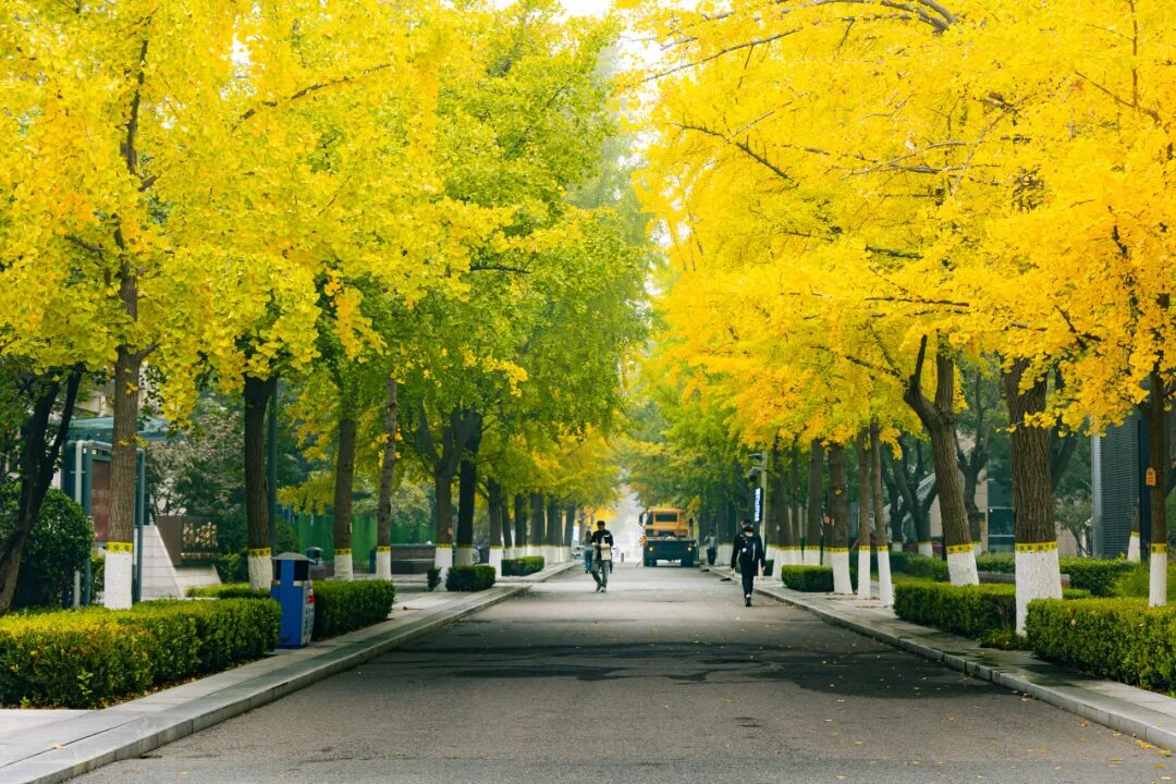 温柔着道路两旁的银杏