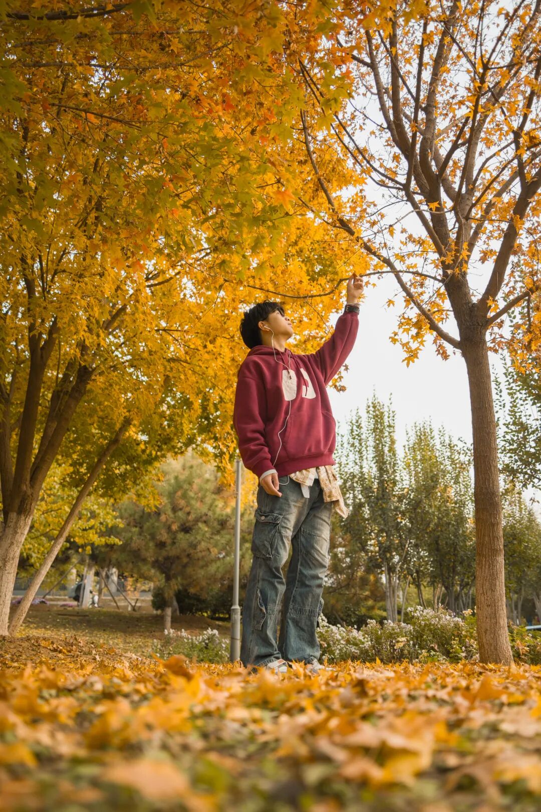 秋叶摇曳、红黄交错