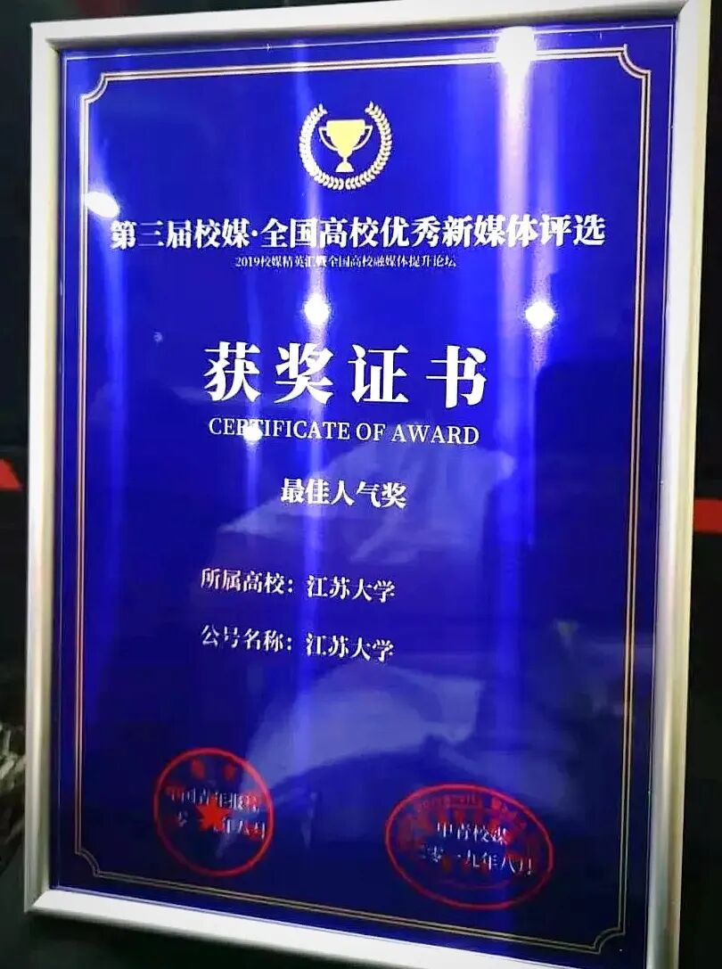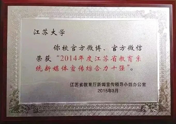 媒体一部负责江苏大学官方微信公众号的日常运营维护,日常开展选题策划、素材整理、文案编辑、排版设计等,着眼学校事业发展成绩、教学科研进展、校园生活动态、师生杰出榜样、四季景观风物等。