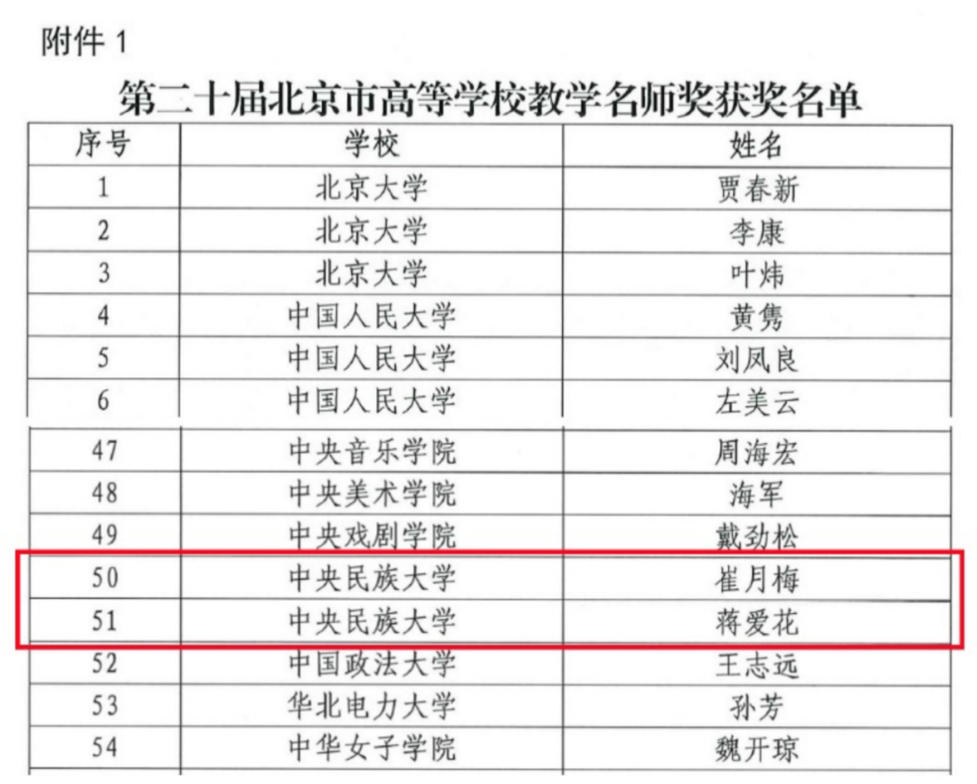 近日,2024年度北京市高等学校教学名师奖获奖名单正式公布。我校舞蹈学院教授崔月梅、历史文化学院教授蒋爱花,荣获第二十届北京市高等学校教学名师奖。教育学院教授袁梅,荣获第八届北京市高等学校青年教学名师奖。