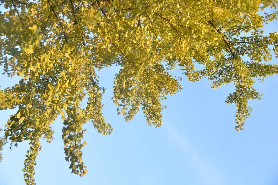 绿叶延伸到无边的天空